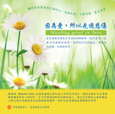 《因為愛,所以走過悲傷》這個針對喪親哀痛的關懷系列專輯終於在2013年3月正式出版了。整套專輯由六張1小時CD按六個主題構成,彼此循序漸進相互連貫。 專輯試聽請按:第1段,第2段,第3段,第4段,第5段,第6段,第7段,第8段,第9段,第10段,第11段。 如欲購買,請下載申購單。謝謝您!
